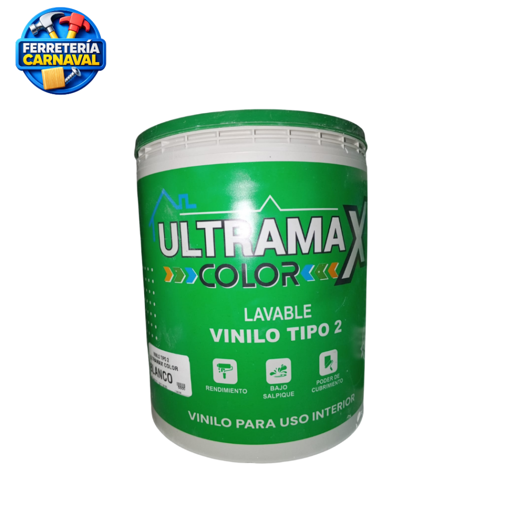 cuñete de pintura vinil-acrílica Ultracolor de alto desempeño, que ofrece una excelente relación calidad-precio y es ideal para el mantenimiento de interiores.